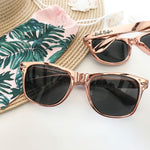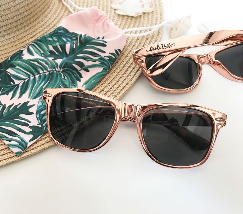 These super cute metalic party sunglasses make a great accessory for beach days, bachelorette parties, and weddings.
