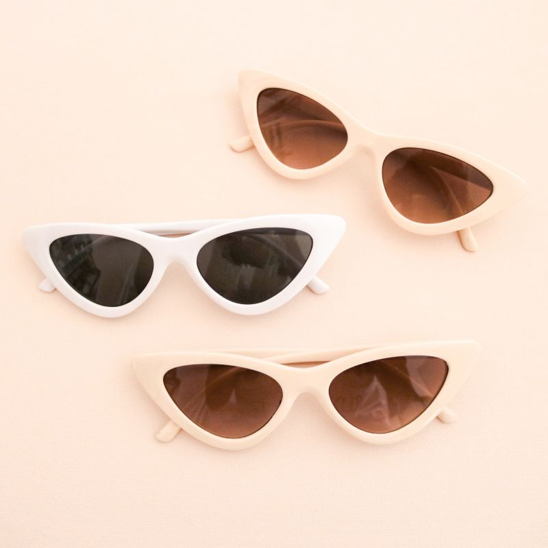 Cat eye bachelorette party sunglasses make a chic bachelorette party favor for your bridesmaids! You can use them as a photo prop for some unique shots in the pool or at the beach. Each pair of cat eye-shaped sunglasses comes in your choice of white or beige.