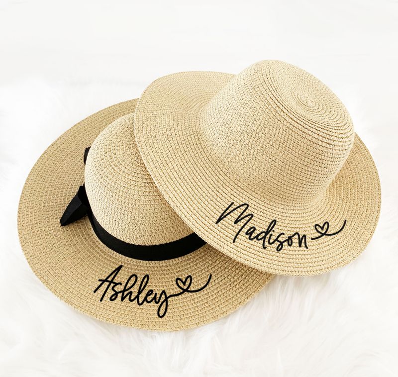 Bachelorette party hats are the perfect accessory for a bachelorette party, Party for beach bachelorettes, destionation bachelorette parties, honeymoons and more! Hats come personalized or with no personalization per your request! Your choice! These hats make a practical and stylish gift for your bachelorette party weekend or for any summer event! Find the hat that is right for you from floppy hats, fedora's, or a baseball hat.