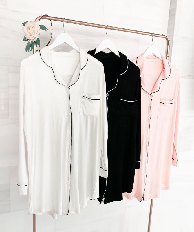 Bridesmaid Sleep Shirts are the perfect gift for the girls in your bridal party! Each soft modal cotton shirt comes in white, pink, or black with a contrasting trim. Shirts are printed with the bridal party title of your choice on the front pocket.