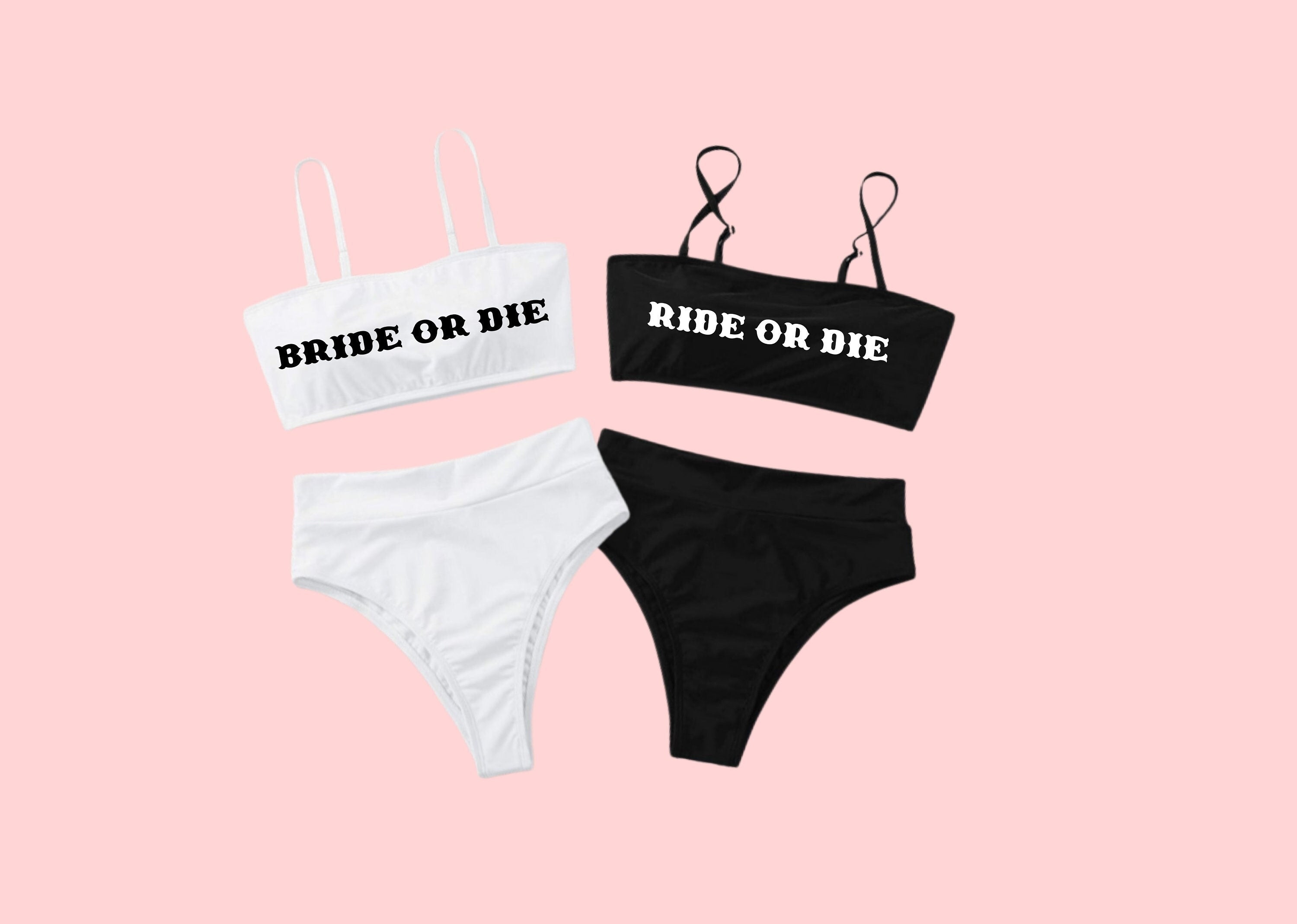 Bride or Die Tube Top Bikini, Bachelorette Bathing Suits, Bride Swim Suit, Tribe Swimsuit customizable Bride Swimsuit.