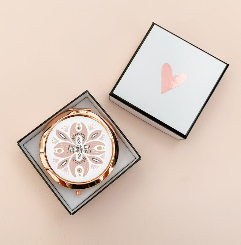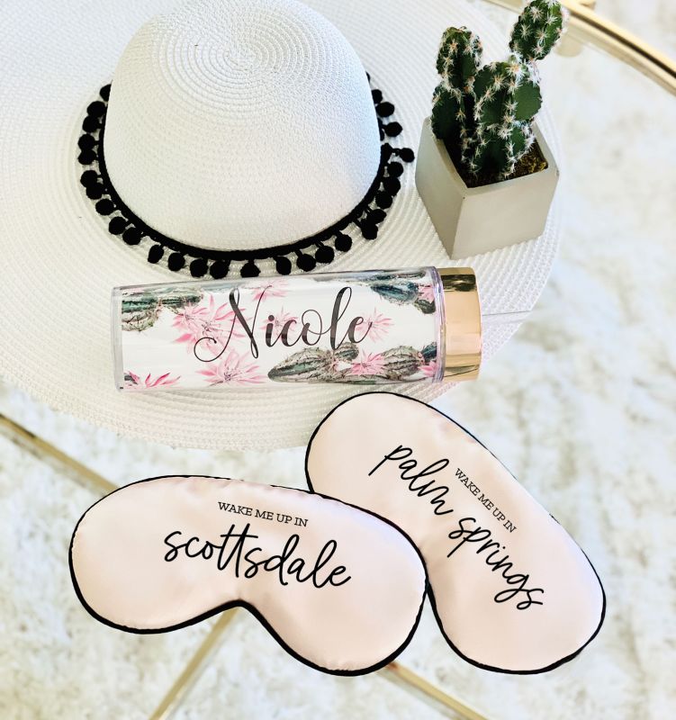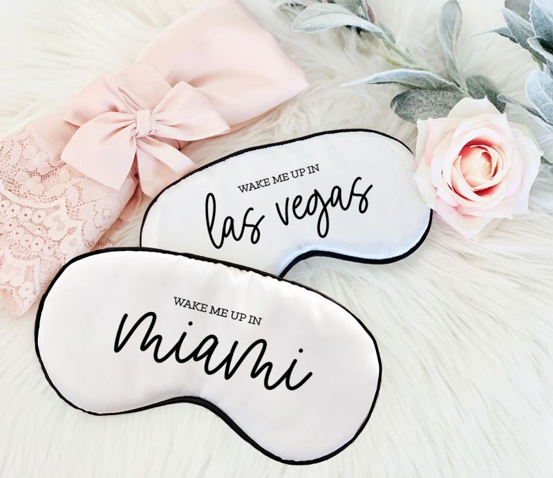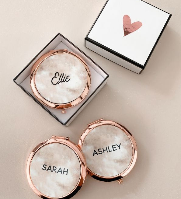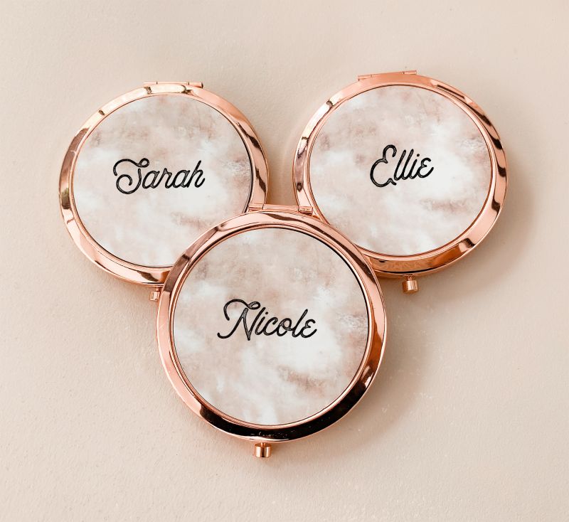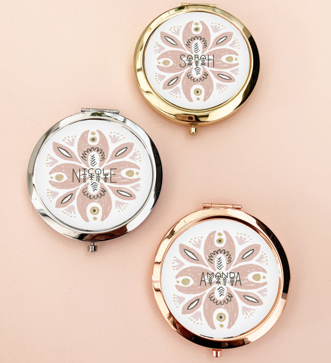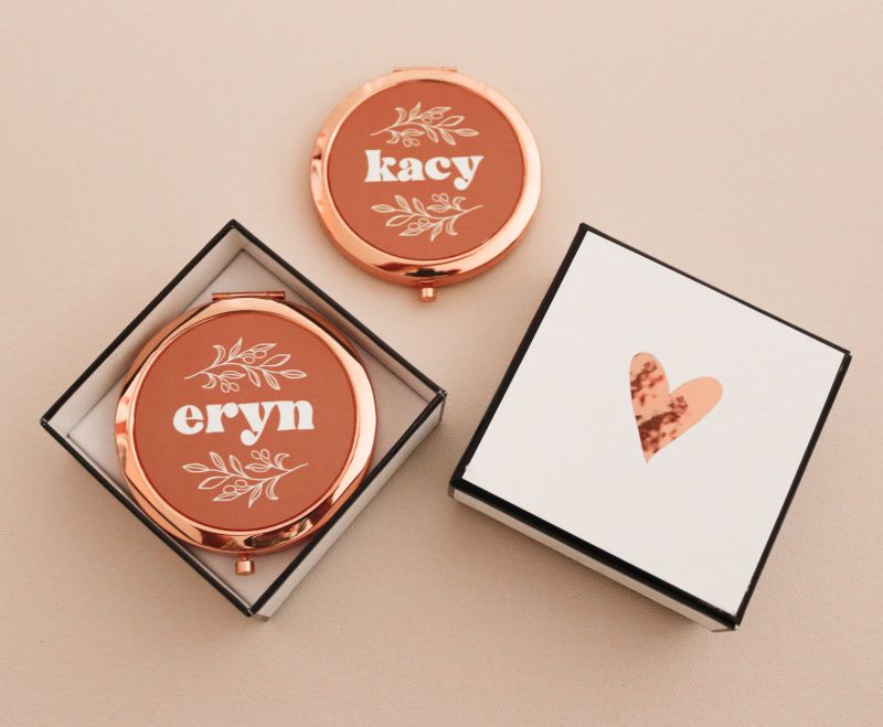 Pretty compact mirrors &  Personalized Sleep Mask make a practical and fun gift for your  bridal party! Each compact or sleep mask comes with the name of your choice.