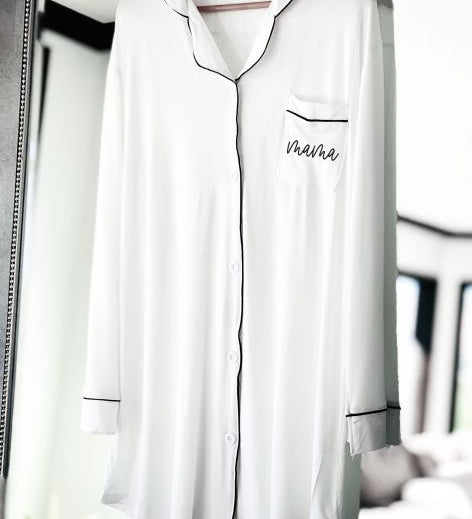 Crafted for bridal parties, these bridesmaid sleep shirts are amazing and convenient for getting ready in on the wedding day! Created to make everyone in your bridal party to feel comfortable and cute! Perfect opportunity for getting ready photos with your bridal party. Change with ease into your wedding or bridesmaid dress without messing up your hair and makeup with the button down front.