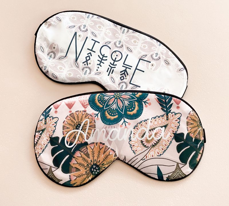 Personalized sleep masks make a good gift idea for the bridal party, family and co-workers! Sleep mask are made of a soft satin nylon fabric and come in the color and style of your choice.Don't forget to check out our matching sleep shirts!