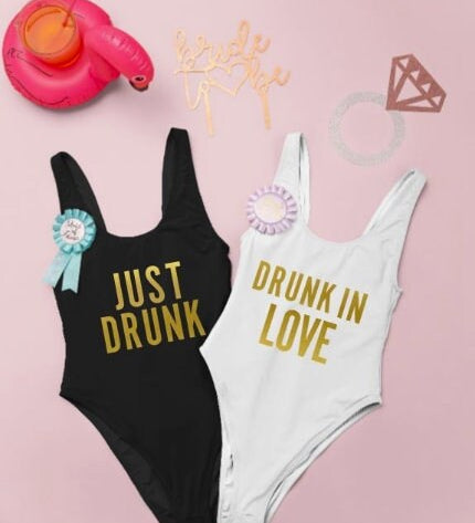 Drunk in love custom bachelorette swimsuit