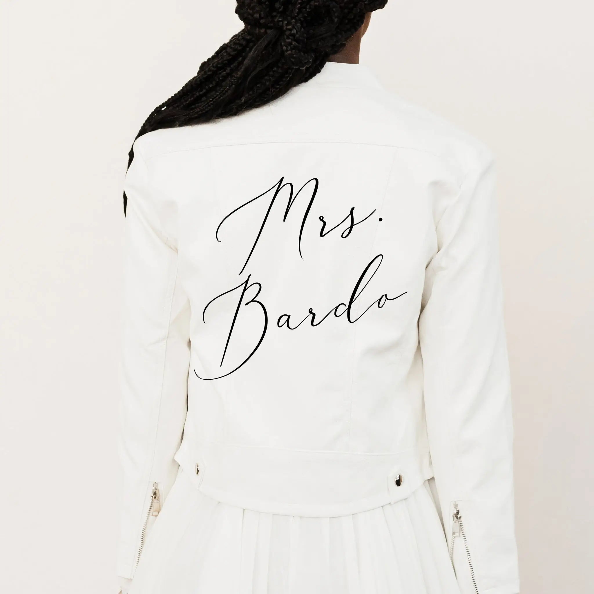 Additionally a fantastic choice for bridesmaids, friends, girlfriends, etc. This jacket can be personalized with any name or slogan.