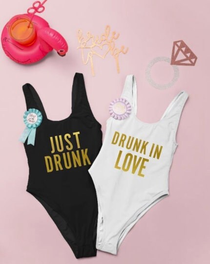 Drunk In Love Bachelorette Party Bathing Suits, Matching Bridesmaid Bathing Suits, Bride to Be Swim Suit