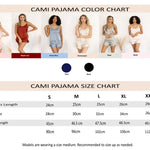 The cami set is great for getting ready in for the wedding day or as matching pajamas to celebrate the bachelorette party. These sleeveless pajamas come in a silky satin fabric and v-neck front.
