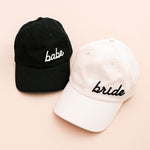 Bride & Babe Baseball Caps hats make the perfect addition to any bach party weekend! Each baseball cap comes with an adjustable strap and an embroidered patch in your choice of bride or babe.