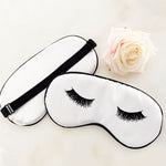 Eyelashes Sleep mask are a perfect gift item for your bridesmaids or as an addition to a bridesmaid proposal box. Sleep masks a great gift for friends, family, co-workers, and even your bridal party during your bachelorette weekend! Each soft satin nylon mask comes in the color of your choice with a contrasting trim, an adjustable strap, and is personalized with "your location of choice.