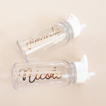 Personalized Sport Bottles are a great gift for your bridal party or as a birthday or holiday gift! These glossy sports bottles are personalized with a custom name in gold vinyl and come in your choice of white or black.
