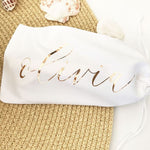 Which pouch for sunglasses pouches make great gifts for your bridal party! Each microfiber pouch comes printed with gold name of your choice.